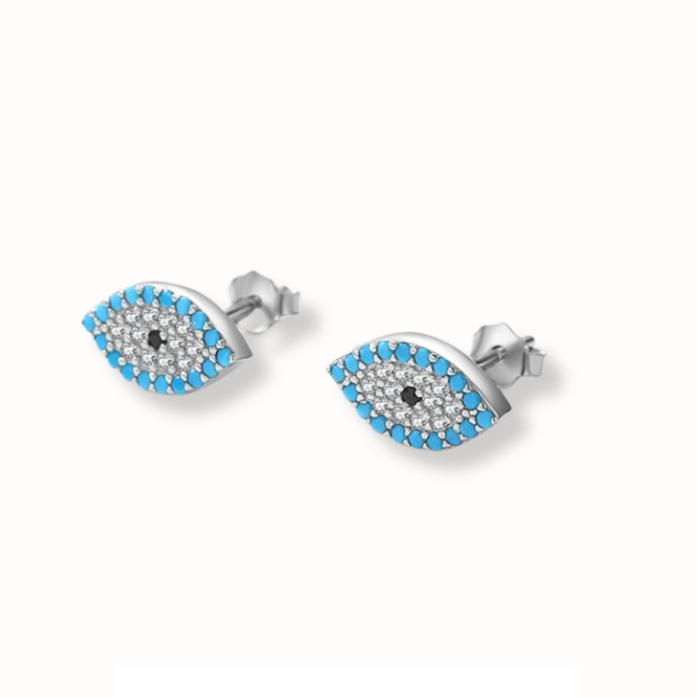 Les boucles d'oreilles Mati sont des bijoux en argent sterling 925, délicatement plaquées de rhodium pour préserver leur brillance au fil du temps. Elles sont ornées d'une zircone et de véritables turquoises. Leur design s'inspire du Mati grec, un symbole à la fois porte-bonheur et protecteur. Vous pouvez également retrouver cette collection en bagues, en bracelets et en colliers, si vous souhaitez compléter harmonieusement votre ensemble.