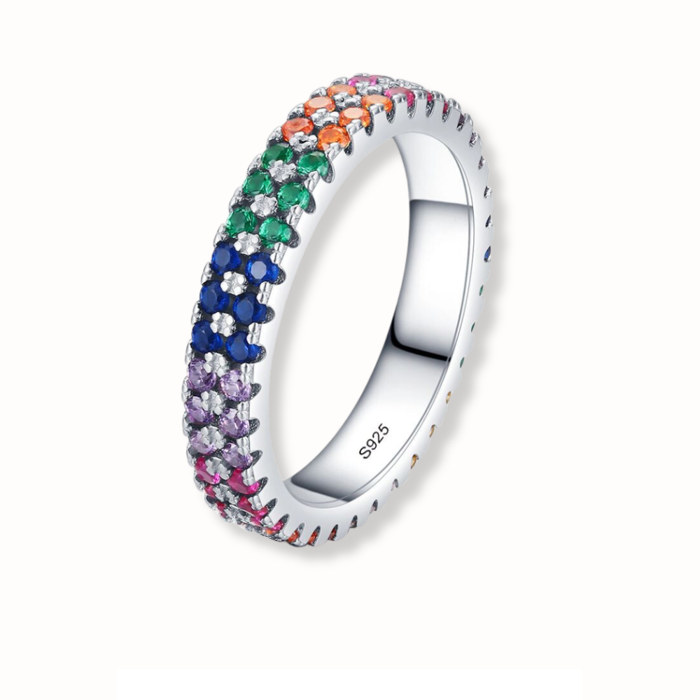 La bague Alga est conçue en argent sterling 925, minutieusement plaquée de rhodium pour une brillance qui perdure dans le temps, et elle est ornée de zircons multicolores, lui conférant ainsi une singularité exceptionnelle.