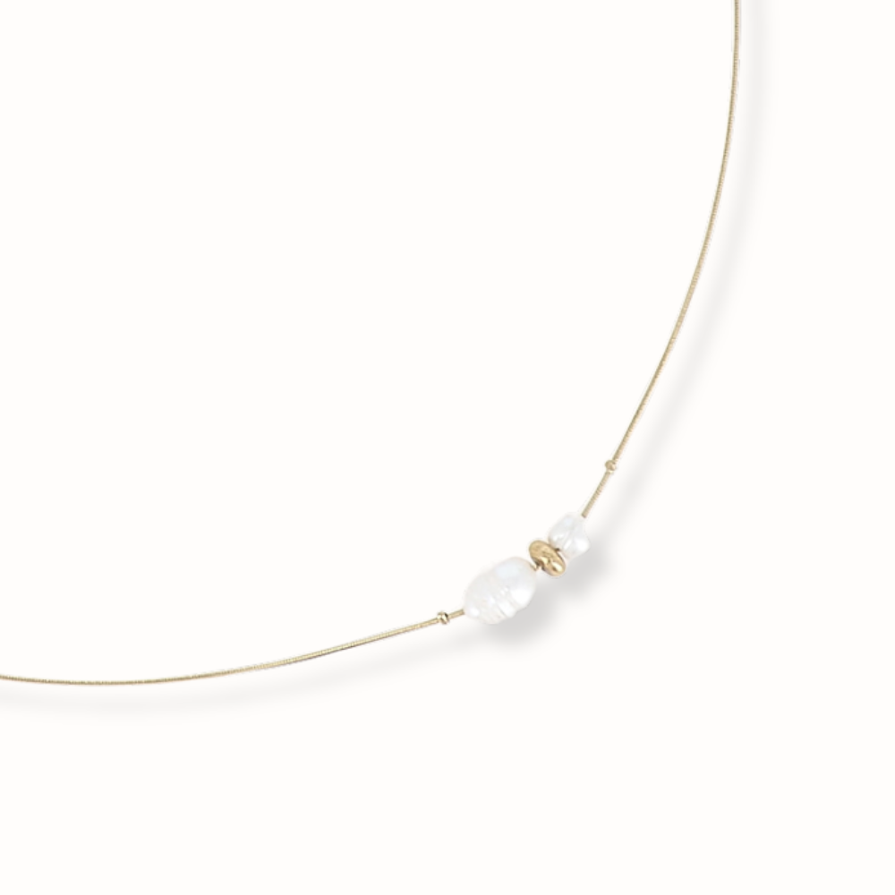 Ce collier minimaliste en acier inoxydable met en valeur une perle d'eau douce naturelle, délicatement suspendue sur un fil fin. Son design simple et élégant s'adapte à toutes les occasions, apportant une touche de sophistication subtile.