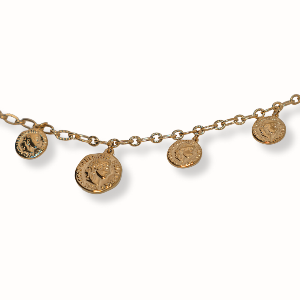 Découvrez le collier Céto, inspiré des pièces de monnaie anciennes. Ce bijou marie l'élégance antique et la modernité.