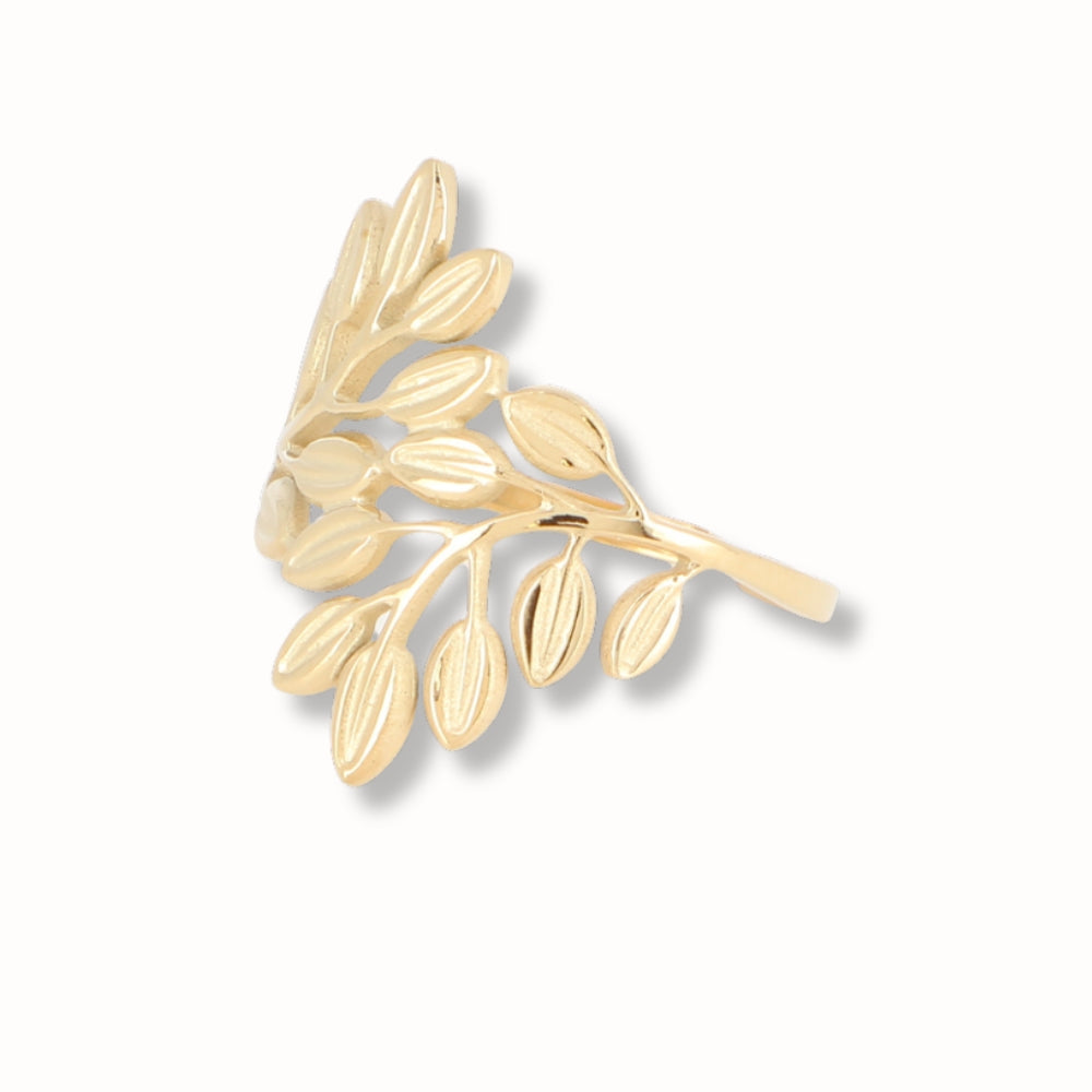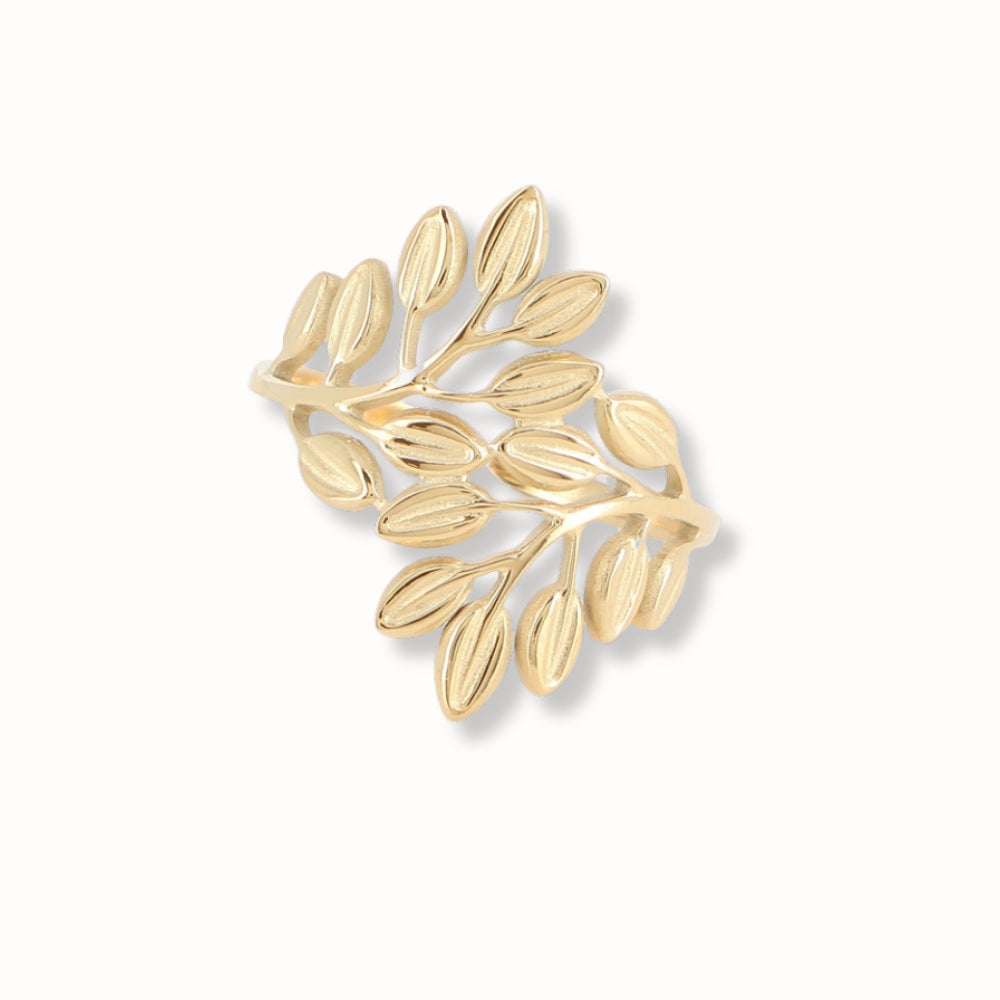 Découvrez la bague Flora, élégante et ornée d'un délicat motif de feuilles. Elle évoque la beauté et la simplicité de la nature. Ajustable pour s'adapter parfaitement à votre taille, elle est en acier inoxydable et garantie sans nickel, sans cadmium, sans sel de plomb. Résistante à l'eau et ne ternit pas.