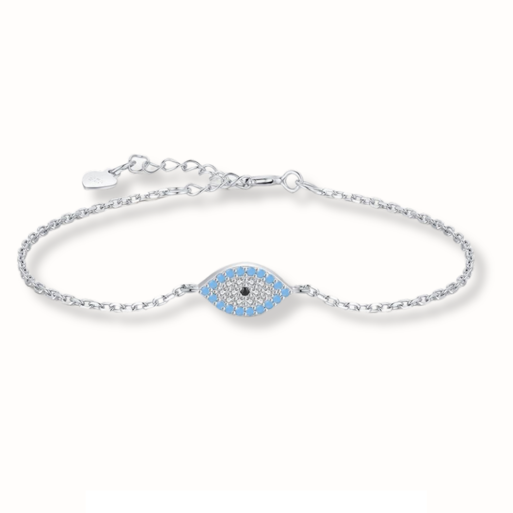 Le bracelet Matis est un bijou en argent sterling 925, minutieusement plaqué de rhodium pour préserver sa brillance durable au fil du temps. Il est magnifiquement orné d'une zircone et de véritables turquoises. Son design s'inspire du Mati grec, un symbole à la fois porte-bonheur et protecteur. Vous avez également la possibilité de découvrir cette collection en bagues, en colliers et en boucles d'oreilles, si vous souhaitez harmonieusement compléter votre ensemble.