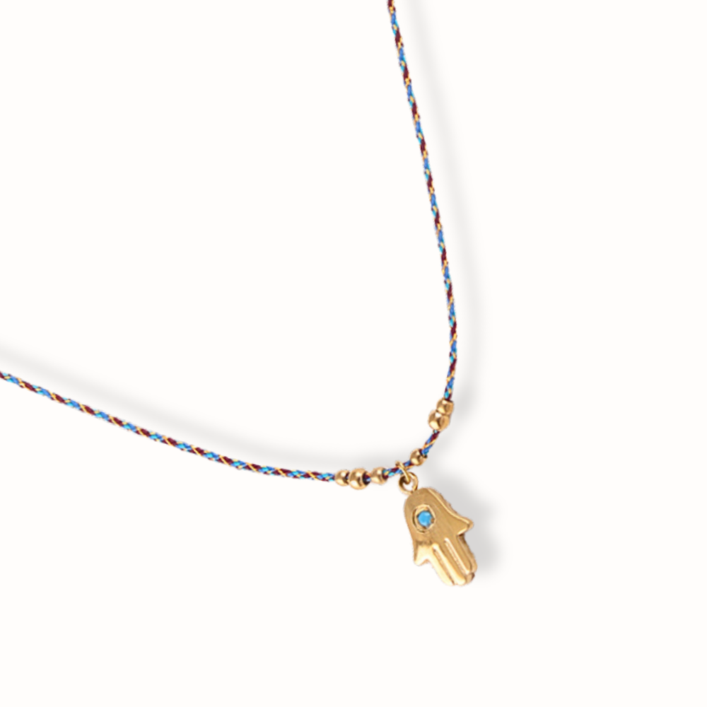 Ce collier raffiné en acier inoxydable est orné d'un pendentif Khamisa, symbole protecteur, accompagné d'un zircon lumineux. La combinaison du design mystique et de la pierre précieuse ajoute une touche élégante et spirituelle à ce bijou intemporel.