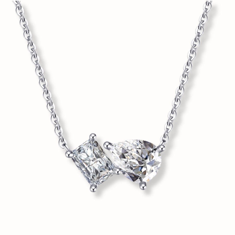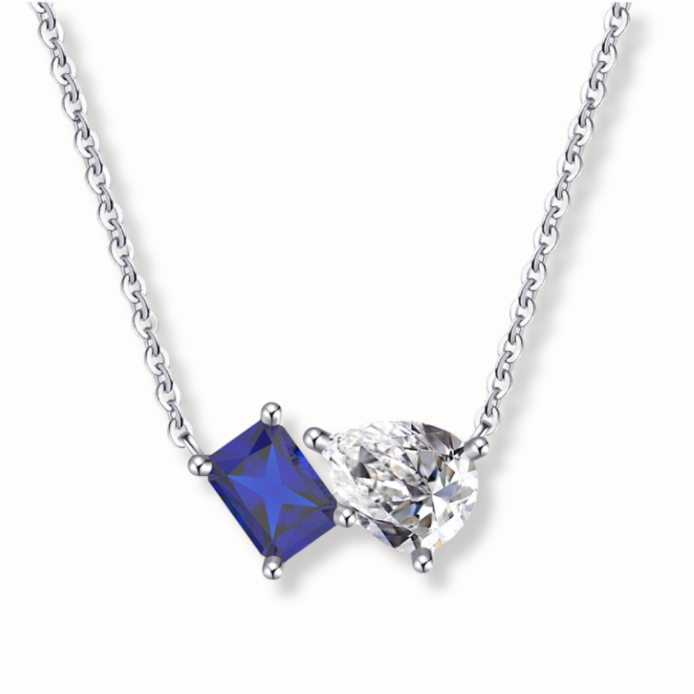 Découvrez le collier Omia, un bijou en argent 925 rhodié, serti de zircons scintillants. Disponible en deux variations de couleurs : une avec deux pierres blanches et une avec une pierre bleue et une blanche. Ce collier reflète la beauté pure et ajoute une touche raffinée à votre tenue
