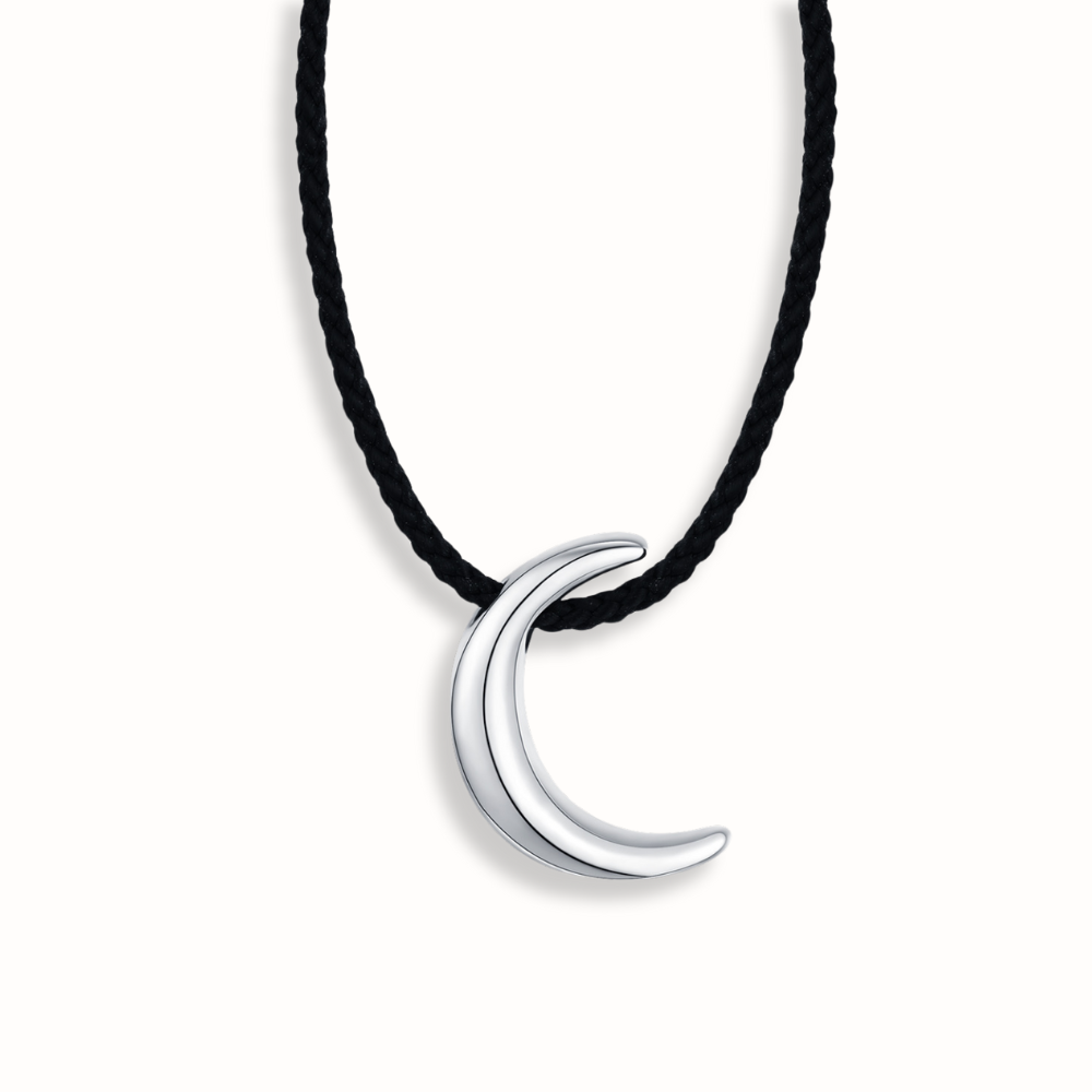 Nom inspiré de la déesse grecque de la lune, Selene, ce collier incarne la beauté et la mystique des cieux nocturnes. Le pendentif en croissant de lune, en argent 925 rhodié, est suspendu à un cordon noir tressé, créant un équilibre parfait entre élégance classique et modernité audacieuse. Une pièce idéale pour un look à la fois élégant et intemporel.