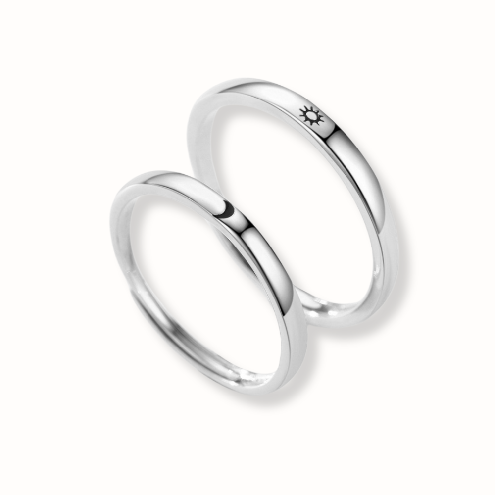 L'ensemble Solis se compose de deux bagues en argent S925 rhodié, pensées pour vous. Avec leur design épuré et leur gravure symbolique représentant le soleil, elles incarnent la lumière et la chaleur de votre lien . Ces bagues, conçues pour durer, célèbrent vos plus beaux souvenirs.