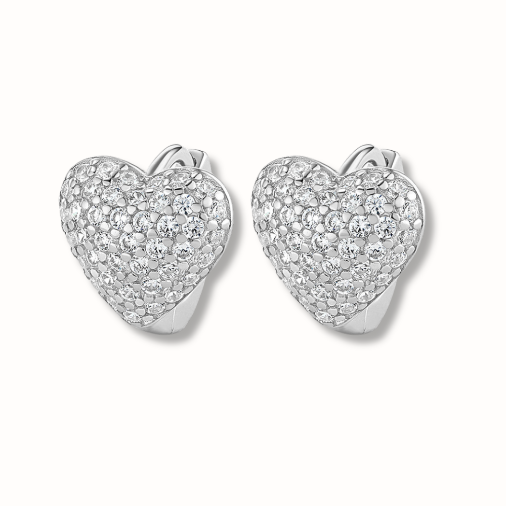 Ces boucles d'oreilles VENUSIA , sont l'expression même de la finesse en argent sterling 925. Elles bénéficient d'un placage en rhodium pour une brillance qui résiste à l'épreuve du temps. Chaque pièce est méticuleusement parsemée de zircons, disposés en pavé pour former des cœurs captivants.